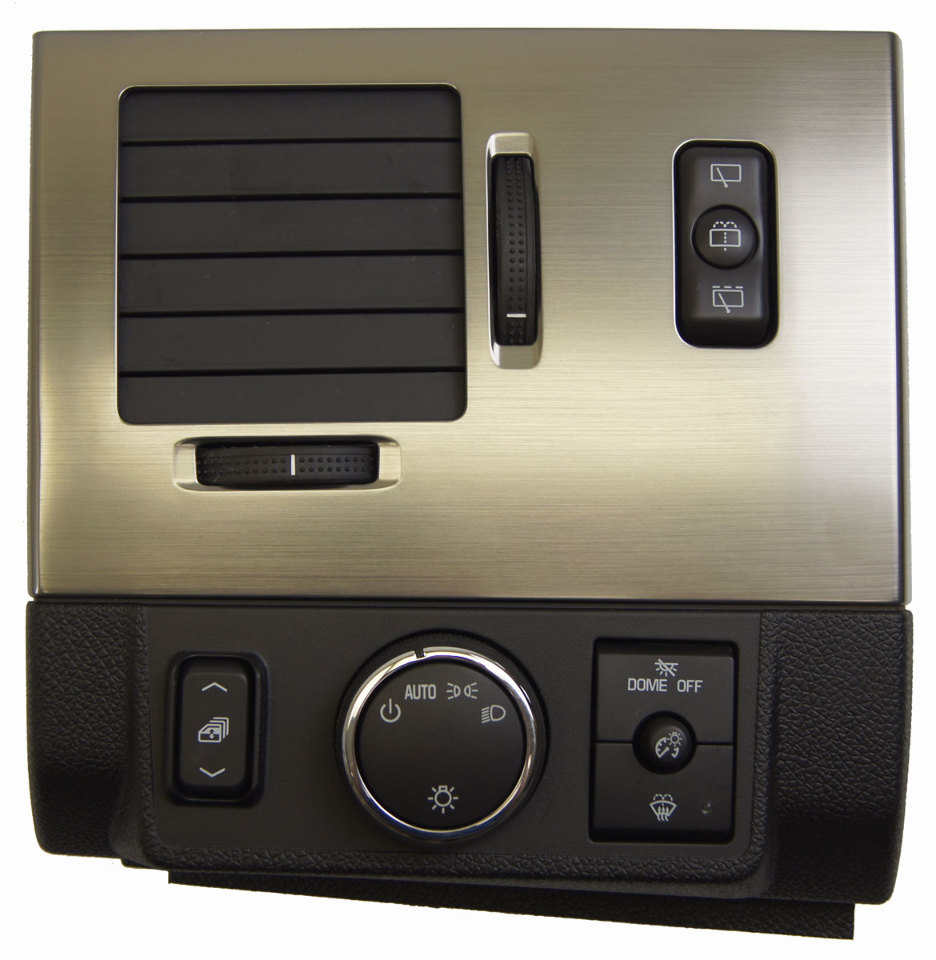 This is the bezel for 2008-2009 Hummer H2 SUV vehicles. This includes the headlight switch, bezel, left air outlet duct, driver window switch, dome light switch (w/dimmer knob), heated windshield washer bottle, and the windshield wiper switch. Replace your old bezel with this brand new part from GM at a fraction of the dealer price.