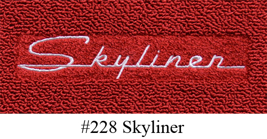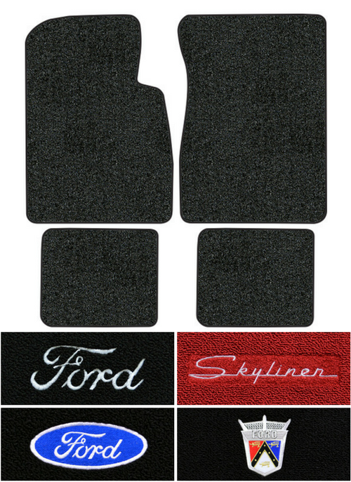 Ford Skyliner floor mats are the perfect way to simultaneously upgrade your Skyliner's interior aesthetic whilst also adding extra protection to your original flooring. Made from true automotive-grade carpeting and custom fit to your Ford Skyliner's original floor pan these Skyliner floor mats provide the best fit on the market. Replace your old, worn out floor mats by installing these Custom-Made, OEM-Quality Skyliner Floor Mats. Customize your selection to match your original Skyliner interior colors and materials. We offer several customization options to allow you to decide which are the best Ford Skyliner floor mats for you.