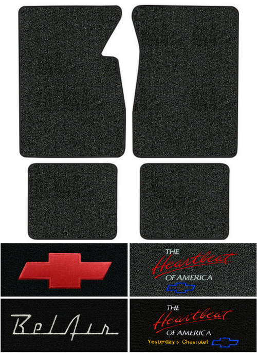 Chevrolet Bel Air floor mats are the perfect way to simultaneously upgrade your Bel Air's interior aesthetic whilst also adding extra protection to your original flooring. Made from true automotive-grade carpeting and custom fit to your Chevrolet Bel Air's original floor pan these Bel Air floor mats provide the best fit on the market. Replace your old, worn out floor mats by installing these Custom-Made, OEM-Quality Bel Air Floor Mats. Customize your selection to match your original Bel Air interior colors and materials. We offer several customization options to allow you to decide which are the best Chevrolet Bel Air floor mats for you.