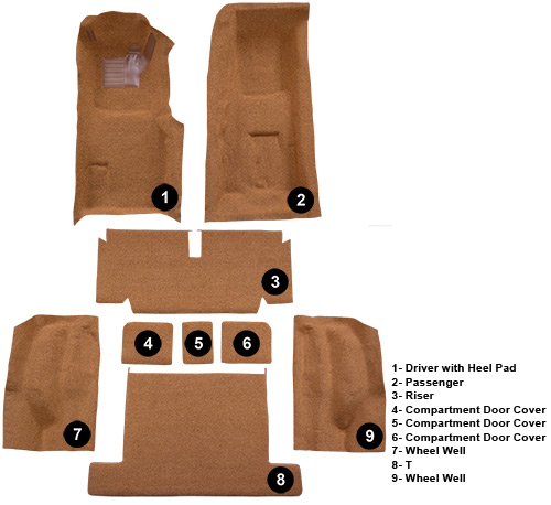 Chevrolet Corvette carpet replacement kits are the ultimate way to overhaul your Corvette Interior. Custom fit using the floor pan of your Corvette's specific year of production as a precise mold to ensure an accurate fit. Manufactured using true automotive-grade carpet and produced in exact match OEM colors and materials you can easily return your Chevrolet Corvette to its former glory. Replacement auto carpet is also available with several upgrades, whether you want ultra-plush carpeting or improved sound & heat insulation with our Mass-Backing option. We offer multiple choices customization options to allow you to decide which is the best replacement Corvette carpet for you.