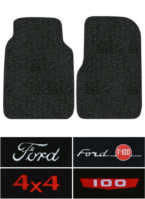 Ford F-100 floor mats are the perfect way to simultaneously upgrade your F-100's interior aesthetic whilst also adding extra protection to your original flooring. Made from true automotive-grade carpeting and custom fit to your Ford F-100's original floor pan these F-100 floor mats provide the best fit on the market. Replace your old, worn out floor mats by installing these Custom-Made, OEM-Quality F-100 Floor Mats. Customize your selection to match your original F-100 interior colors and materials. We offer several customization options to allow you to decide which are the best Ford F-100 floor mats for you.