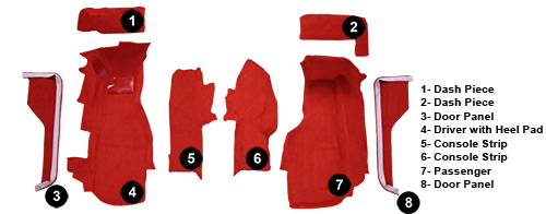 Chevrolet Corvette carpet replacement kits are the ultimate way to overhaul your Corvette Interior. Custom fit using the floor pan of your Corvette's specific year of production as a precise mold to ensure an accurate fit. Manufactured using true automotive-grade carpet and produced in exact match OEM colors and materials you can easily return your Chevrolet Corvette to its former glory. Replacement auto carpet is also available with several upgrades, whether you want ultra-plush carpeting or improved sound & heat insulation with our Mass-Backing option. We offer multiple choices customization options to allow you to decide which is the best replacement Corvette carpet for you.