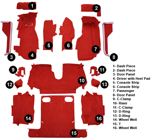 Chevrolet Corvette carpet replacement kits are the ultimate way to overhaul your Corvette Interior. Custom fit using the floor pan of your Corvette's specific year of production as a precise mold to ensure an accurate fit. Manufactured using true automotive-grade carpet and produced in exact match OEM colors and materials you can easily return your Chevrolet Corvette to its former glory. Replacement auto carpet is also available with several upgrades, whether you want ultra-plush carpeting or improved sound & heat insulation with our Mass-Backing option. We offer multiple choices customization options to allow you to decide which is the best replacement Corvette carpet for you.