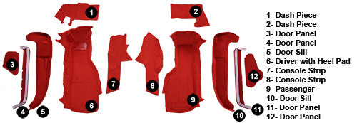Chevrolet Corvette carpet replacement kits are the ultimate way to overhaul your Corvette Interior. Custom fit using the floor pan of your Corvette's specific year of production as a precise mold to ensure an accurate fit. Manufactured using true automotive-grade carpet and produced in exact match OEM colors and materials you can easily return your Chevrolet Corvette to its former glory. Replacement auto carpet is also available with several upgrades, whether you want ultra-plush carpeting or improved sound & heat insulation with our Mass-Backing option. We offer multiple choices customization options to allow you to decide which is the best replacement Corvette carpet for you.