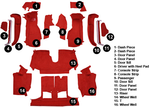Chevrolet Corvette carpet replacement kits are the ultimate way to overhaul your Corvette Interior. Custom fit using the floor pan of your Corvette's specific year of production as a precise mold to ensure an accurate fit. Manufactured using true automotive-grade carpet and produced in exact match OEM colors and materials you can easily return your Chevrolet Corvette to its former glory. Replacement auto carpet is also available with several upgrades, whether you want ultra-plush carpeting or improved sound & heat insulation with our Mass-Backing option. We offer multiple choices customization options to allow you to decide which is the best replacement Corvette carpet for you.