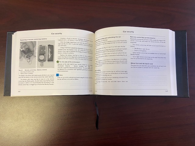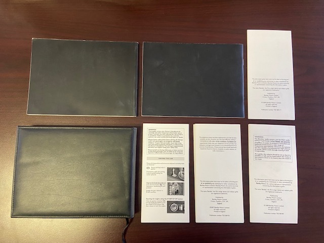 This comes with the Leather Bound Owner's Manual, Service Handbook, Owner information booklet, and quick reference guides.
